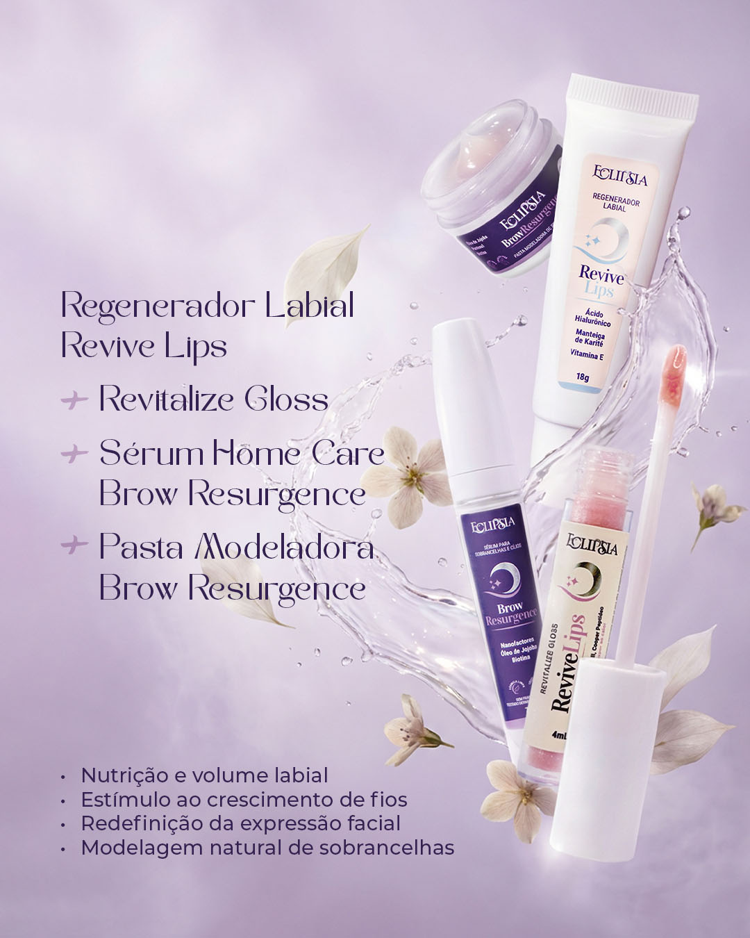 O Regenerador Labial Revive Lips atua profundamente na hidratação e reparação, restaurando fissuras e devolvendo maciez com Ácido Hialurônico, Manteiga de Karité, Niacinamida e Vitamina E. Preenche microlinhas, melhora a elasticidade e mantém o conforto ao longo do dia.