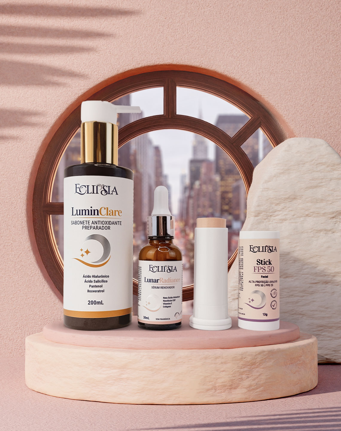 O Kit Escudo Urbano foi criado para quem enfrenta a rotina intensa da cidade e precisa manter a pele protegida, estável e luminosa ao longo do dia.