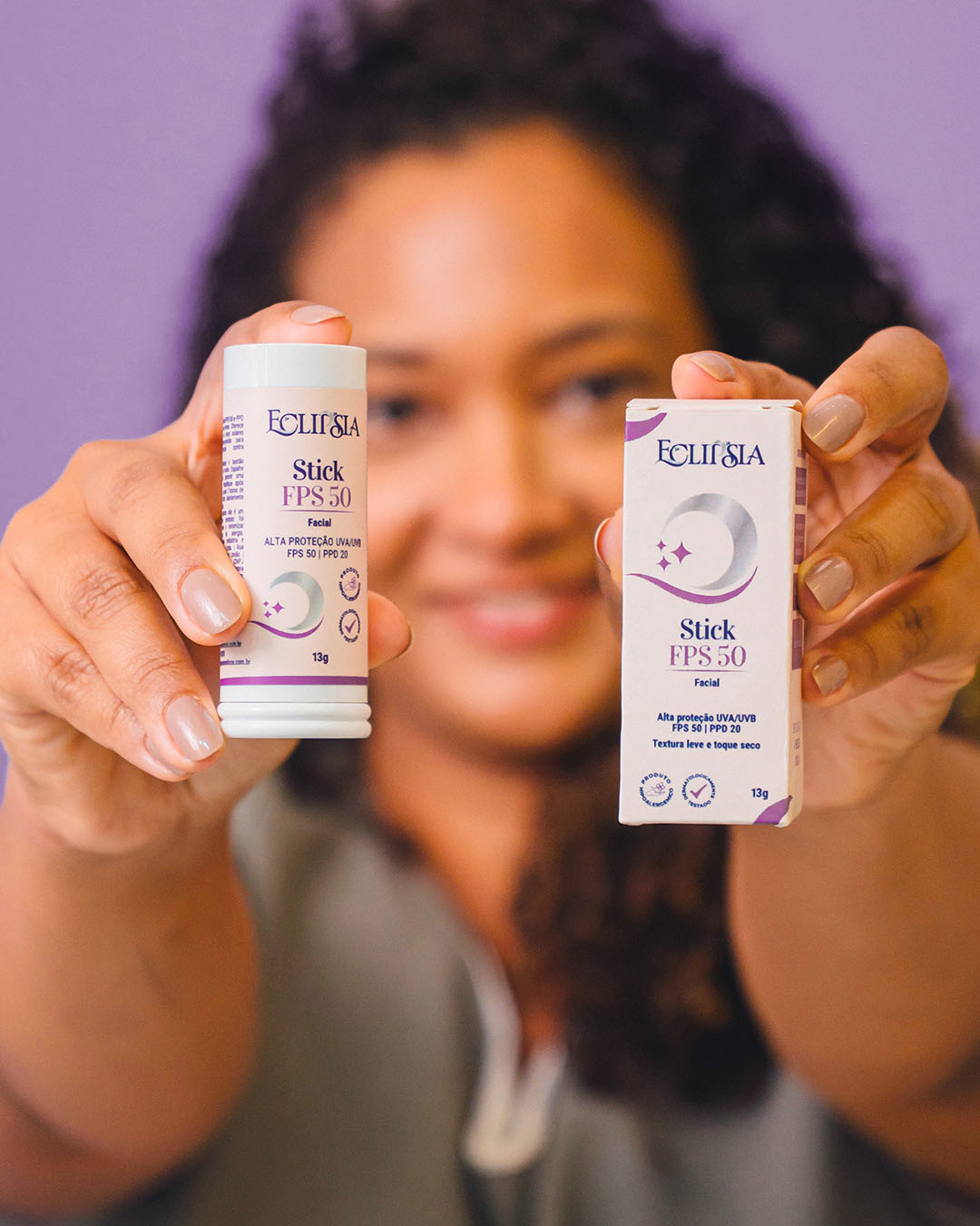 O Stick FPS 50 complementa com proteção fotobiológica, prevenindo novos danos e preservando a uniformidade da pele.