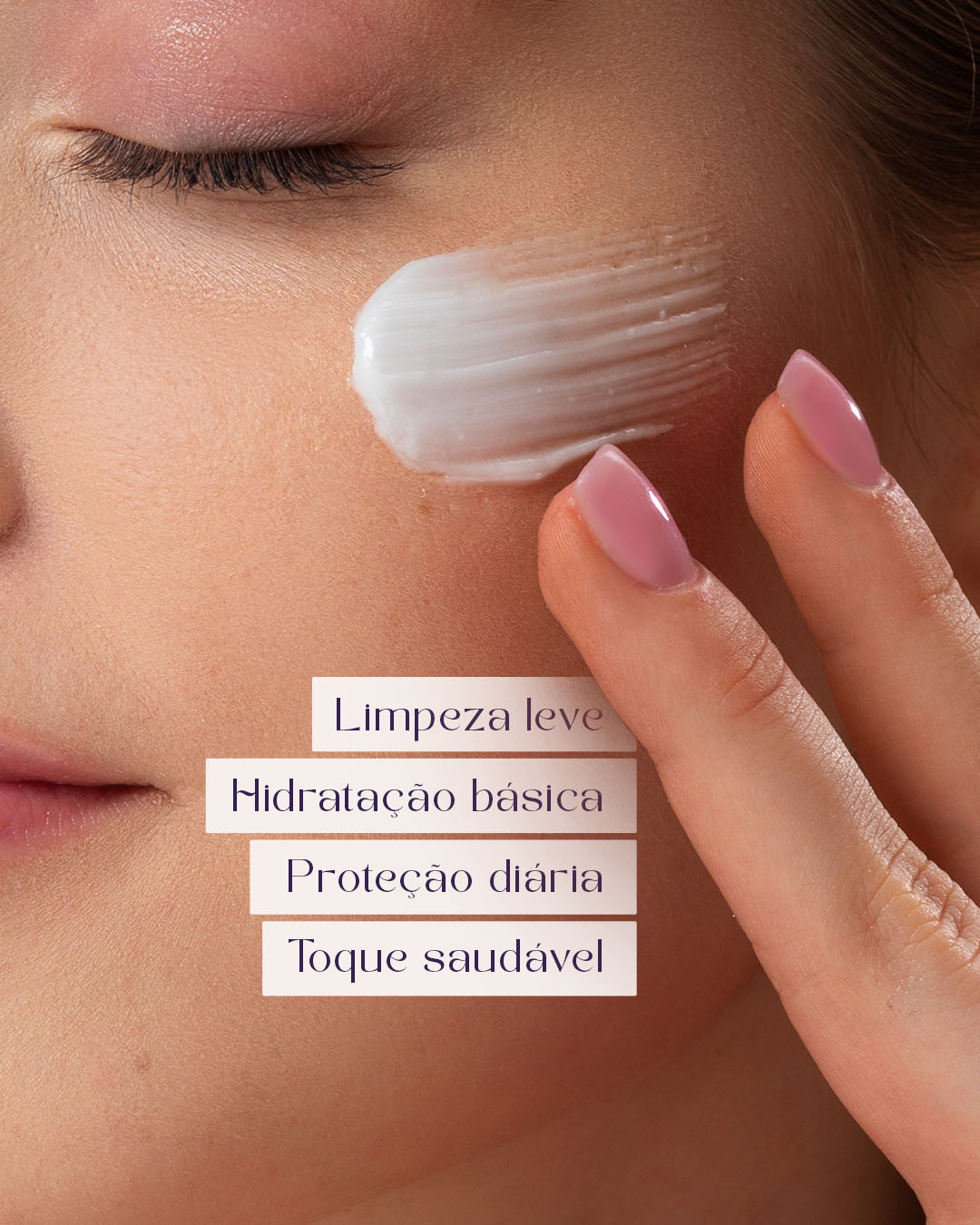 Com apenas três passos essenciais, ele ajuda a estabilizar a pele, reduzir os primeiros sinais de ressecamento e manter o rosto com toque macio, aspecto saudável e conforto ao longo do dia.