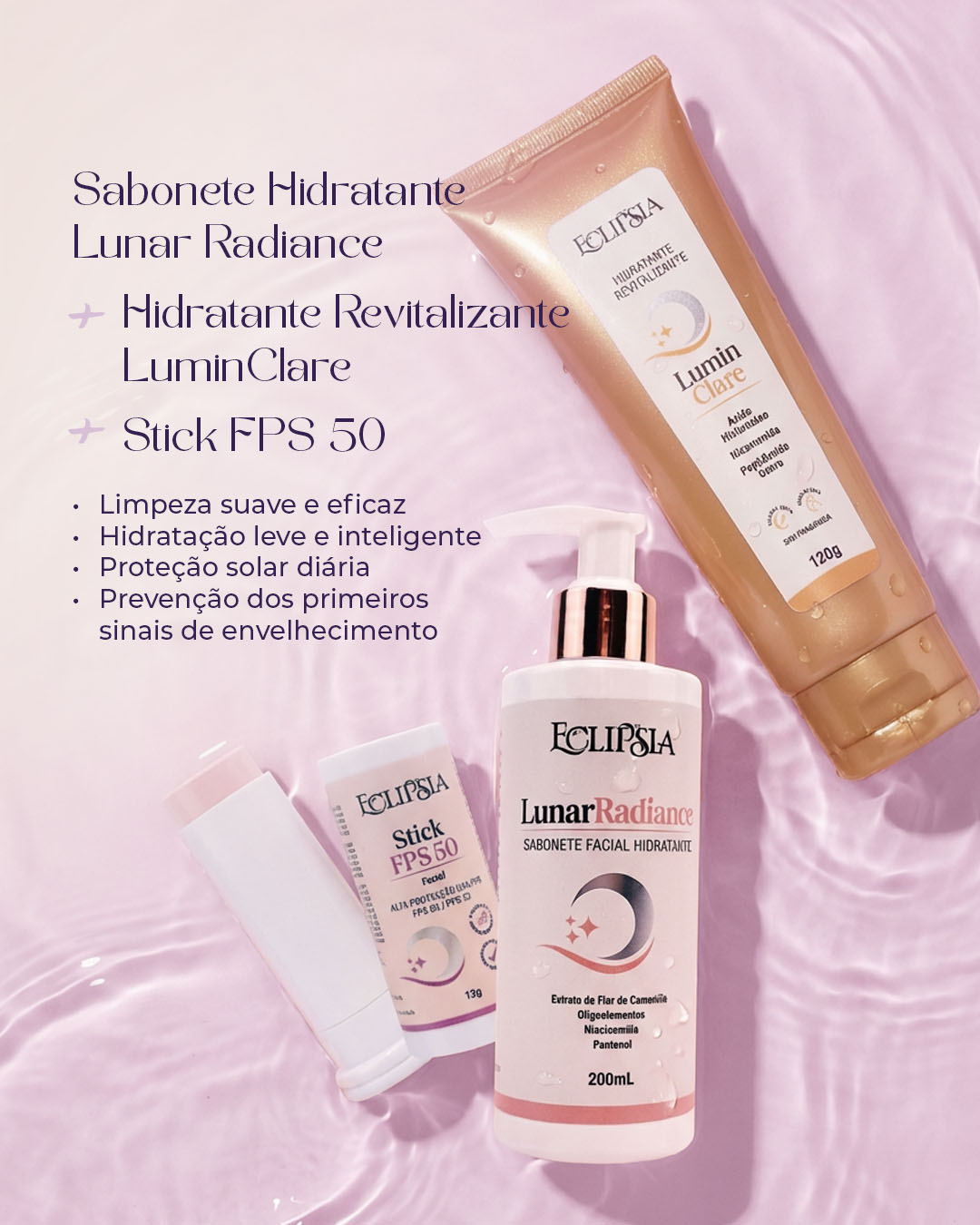 O Sabonete Hidratante Lunar Radiance faz uma limpeza delicada, removendo impurezas e resíduos do dia sem agredir o manto hidrolipídico. A pele fica preparada para receber o tratamento, sem sensação de repuxamento.