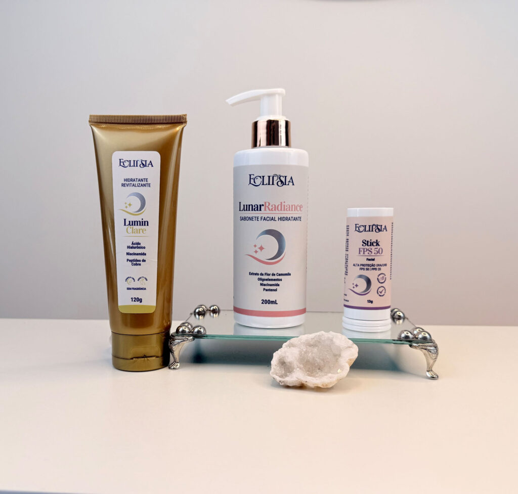 A rotina finaliza com o Hidratante Revitalizante LuminClare, que traz hidratação leve com Niacinamida e Peptídeo de Cobre, reforçando a barreira e garantindo maciez, equilíbrio e estabilidade sem sensação pesada.