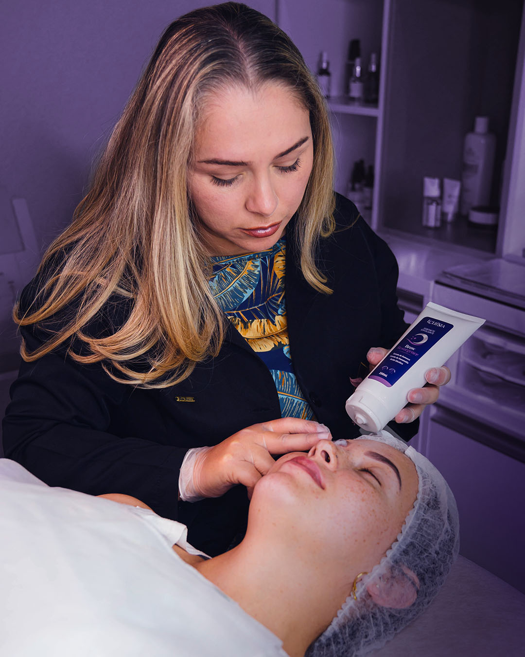 Com a pele limpa e seca, aplique duas gotas em cada sobrancelha e distribua suavemente. Durante o protocolo, pode ser associado à bioestimulação manual ou fototerapia (LED vermelho ou âmbar), que potencializa a regeneração celular, o colágeno e o fortalecimento dos folículos.