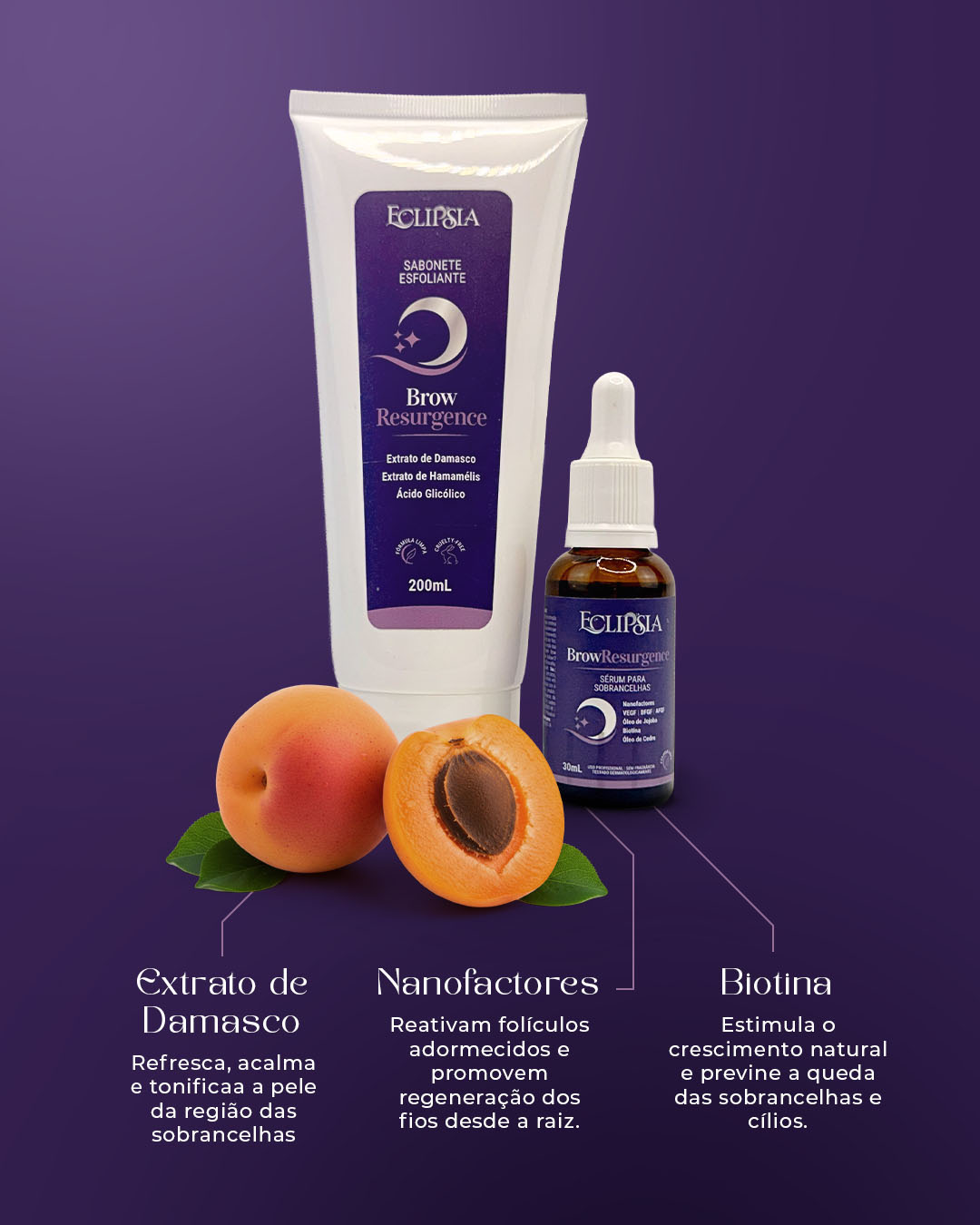 A Linha Profissional Brow Resurgence foi desenvolvida para uso exclusivo em cabine, oferecendo um tratamento completo de reconstrução, regeneração e fortalecimento das sobrancelhas. O protocolo combina o preparo purificante do Sabonete Esfoliante Profissional com a ação concentrada do Sérum Reconstrutor 30ml, formando uma rotina de alta performance que devolve estrutura, densidade e vitalidade aos fios.