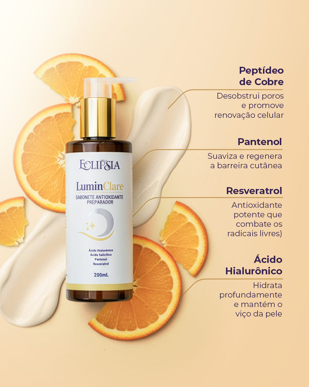 O Sabonete Antioxidante Preparador LuminClare é o primeiro passo para uma rotina de cuidado que trata enquanto limpa.