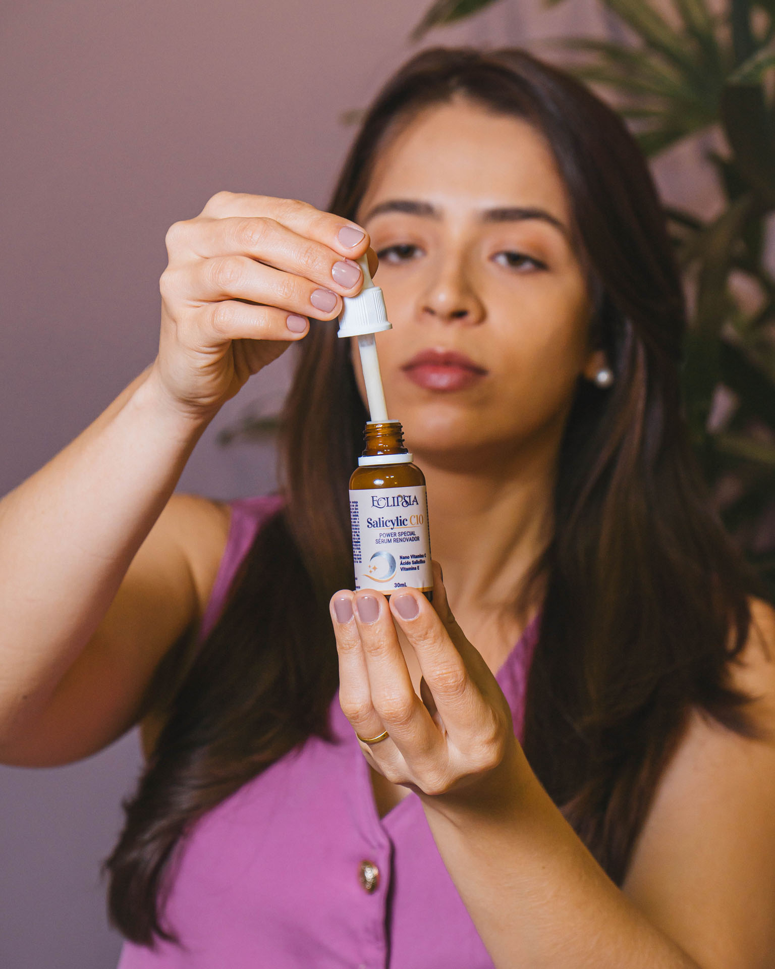 À noite: aplique o Sérum Salicylic C10, que faz a renovação e desobstrução dos poros.