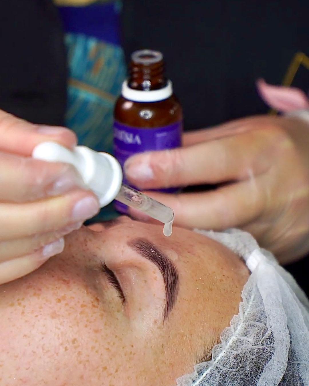 Em procedimentos como brow lamination ou outras químicas, aplique uma fina camada ao término para regenerar, hidratar e proteger os fios.
