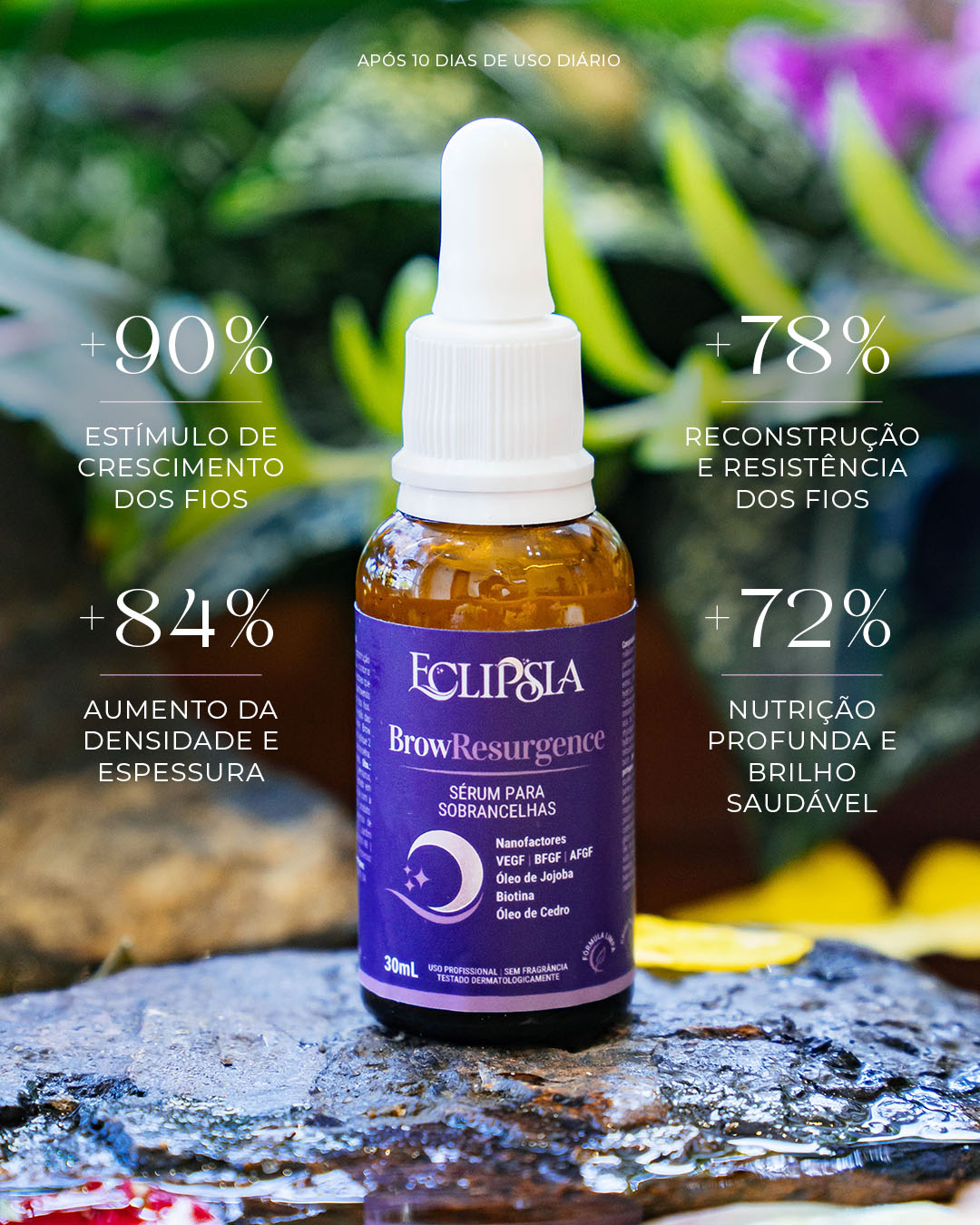 O Sérum Profissional Brow Resurgence foi desenvolvido para protocolos técnicos de reconstrução e regeneração das sobrancelhas, oferecendo fortalecimento, crescimento e resistência intensa.